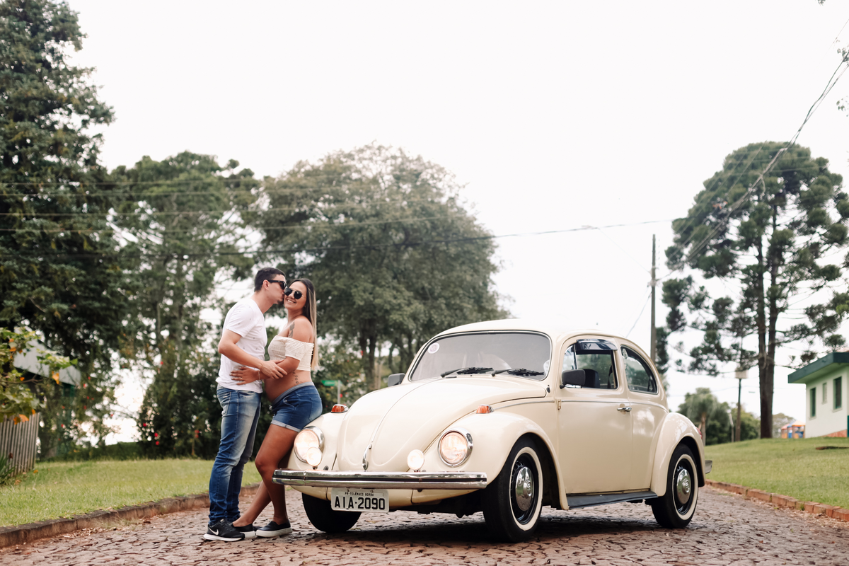 O que não pode falar também foi o Fusca deles, que é o xodó do casal.Tarde chuvosa, tempo nublado, mas chegando na locação a chuva parou, para a alegria de todos.